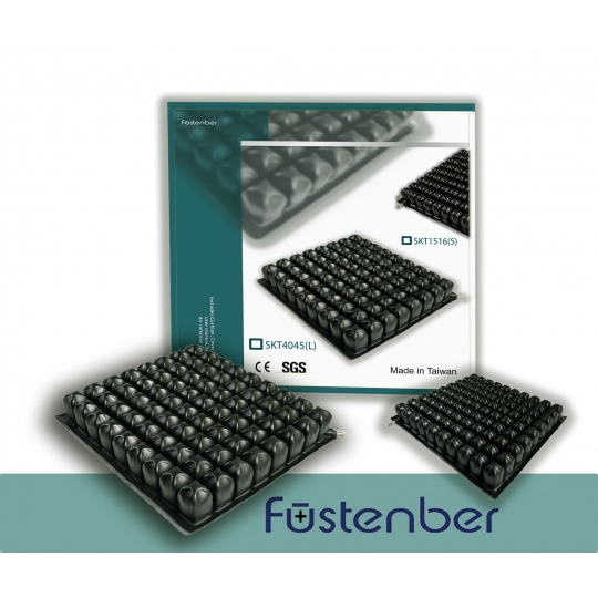 SKT福斯騰浮動坐墊使用多顆連通氣囊設計而成,能均勻分佈壓力到各個氣囊球體。有助於減少對身體的不適當壓力,進而防止褥瘡的產生與形成。